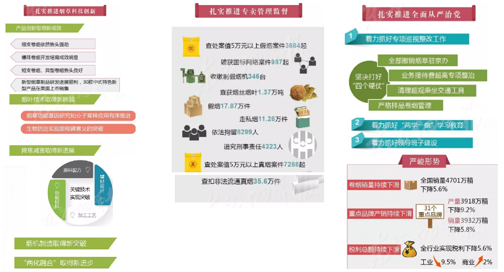 2017年全國煙草工作會議在北京召開,國家局局長凌成興在會上作了題為《堅持穩(wěn)中求進總基調 爭創(chuàng)穩(wěn)中向好新作為以“兩個超萬億”優(yōu)異成績迎接黨的十九大勝利召開》的報告。